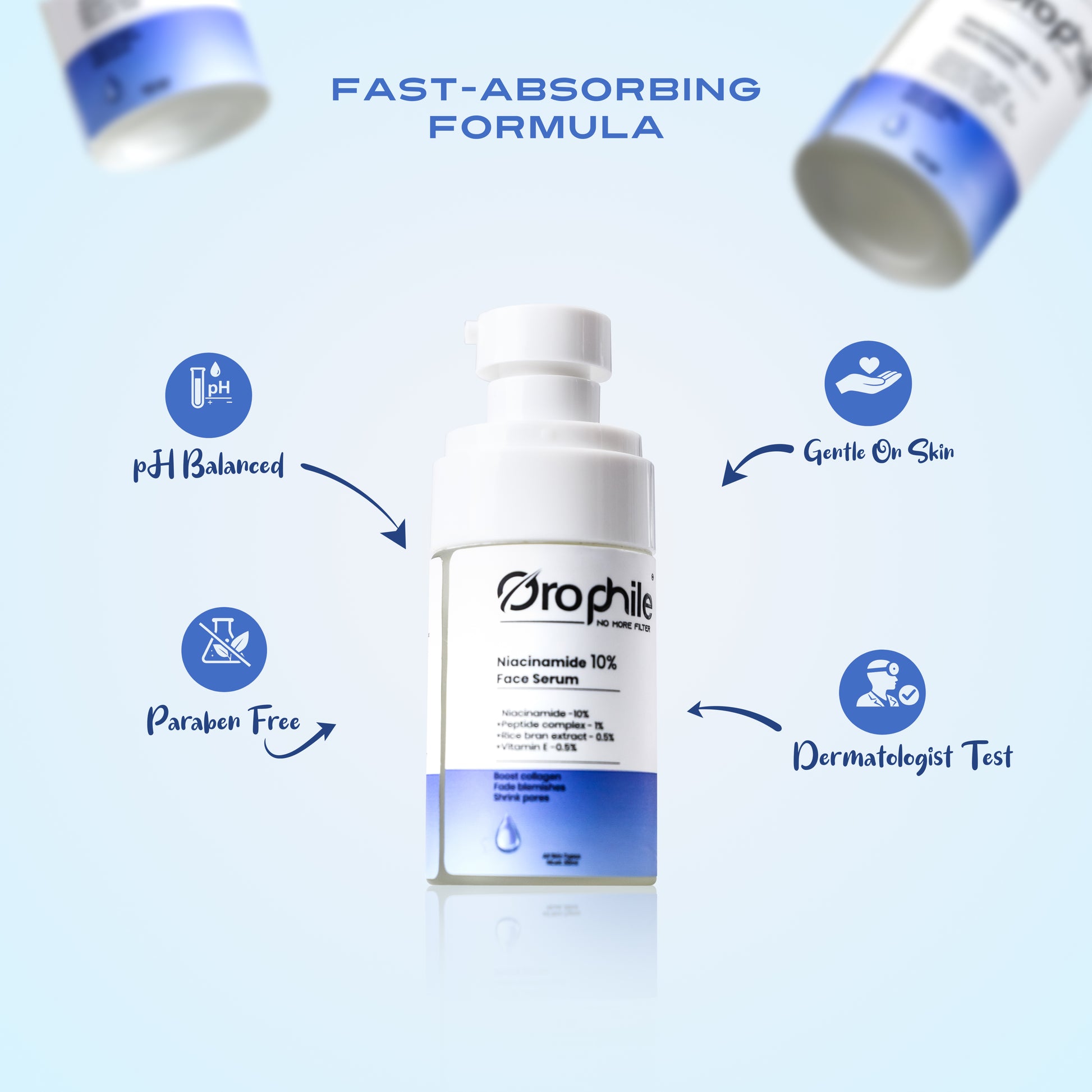 Orophile Niacinamide 10% Face Serum with Peptide Complex | Fades Blemishes, Improve Skin Tone | All Skin Types (30ml)